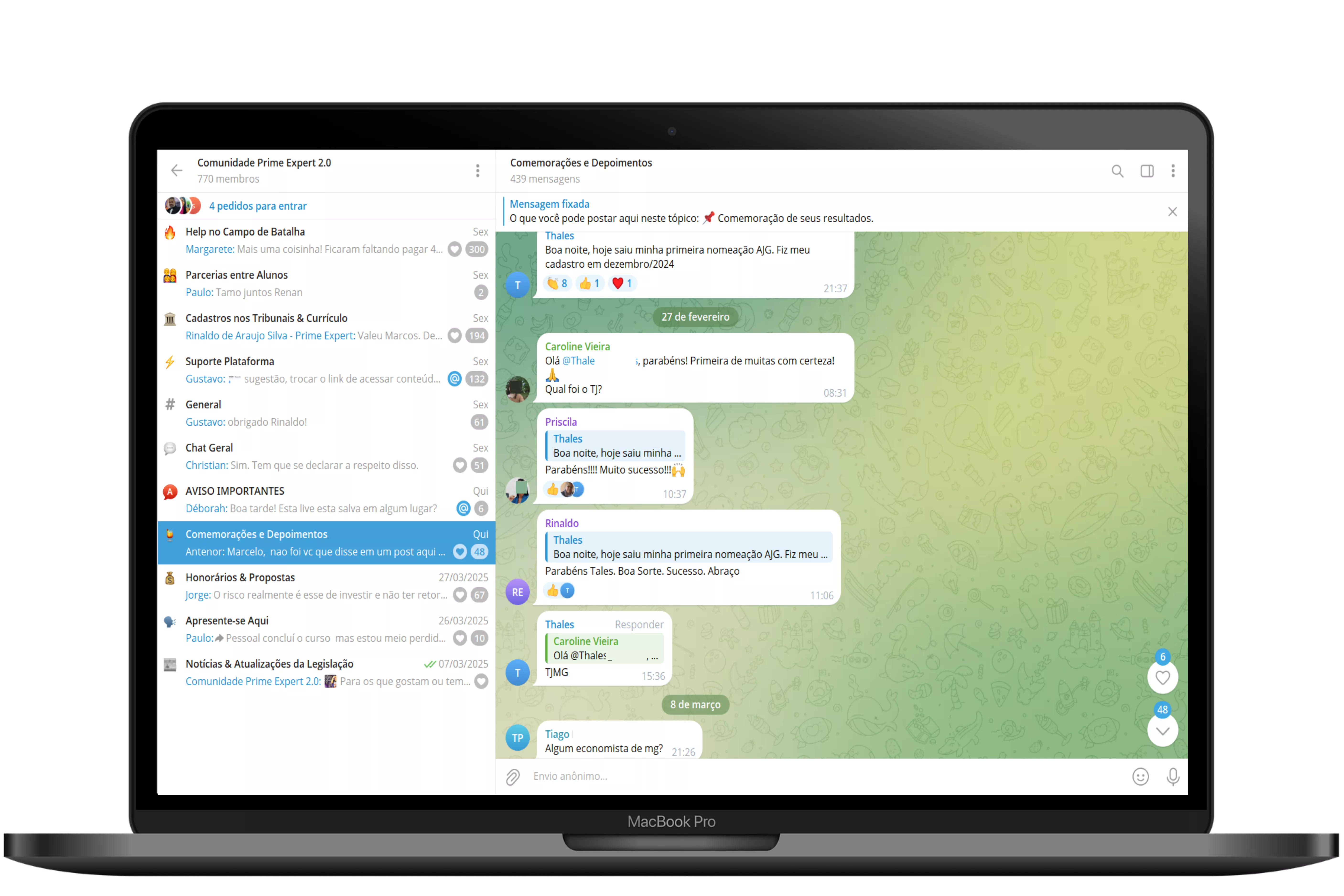 Você fará parte da comunidade privada e exclusiva dos alunos para fazer networks, parcerias, e obter apoio e suporte.